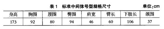 結(jié)合服裝號(hào)型標(biāo)準(zhǔn)和GB/13640—1992勞動(dòng)防護(hù)服號(hào)型,得到中間體規(guī)格尺寸如表1所示。