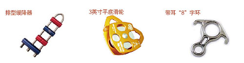 ·消防防墜落輔助設(shè)備星與安全嘶n安全吊帶、安全腰帶配套使用的承載部件的統(tǒng)稱,包括安全鉤、上升器、下降器、止鎖器、八字環(huán)、制動(dòng)桿、墻角護(hù)輪和滑輪裝置等。